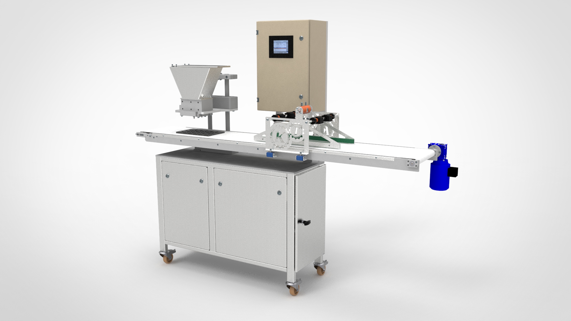 До начала дозирования шоколада на панели управления оператором выбирается необходимая (ранее введенные параметры после обучения машины) рецептура, соответствующая по объему/весу подаваемым формам.
