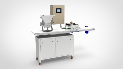 Формы, предварительно подогретые до необходимой температуры, подаются на транспортер вручную. Позиционирование формы под депозитором осуществляется посредством направляющих, остановка в заданном положении посредством оптического датчика.