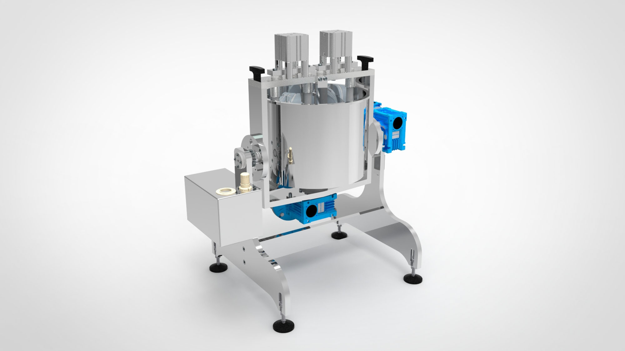 Управление Меланжером, а именно - вращение емкости измельчения, изменение скорости вращения, подъем и опускание камней, контроль над температурой продукта осуществляется с сенсорной панели управления встроенной в электрошкаф.