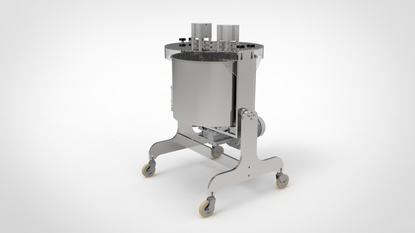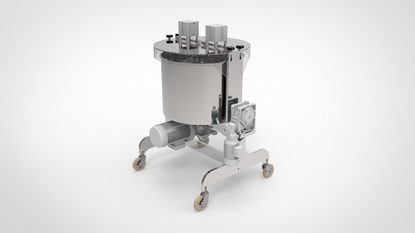Управление Меланжером, а именно - вращение емкости измельчения, изменение скорости вращения, управление наклоном для разгрузки готового продукта, подъем и опускание камней, контроль за температурой продукта осуществляется со шкафа управления.