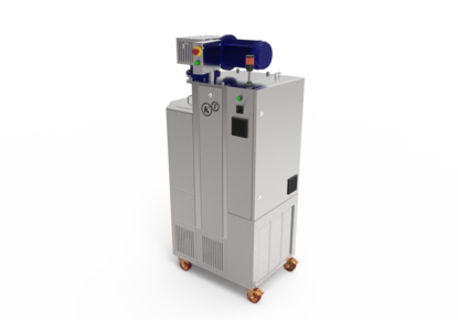 Для бережного обращения с теплочувствительным продуктом шаровая мельница КТ-ШМ50 снабжена автономной системой охлаждения, позволяющей автоматически поддерживать температуру продукта в заданных параметрах, снимая тепло выделяемое мелющими шарам при процессе измельчения продукта.