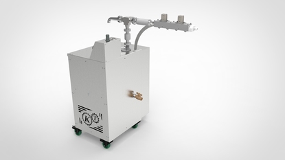 Машина имеет на борту 3-ходовой кран с пневмоприводом, который позволяет не прерывая процесса темперирования и не влияя на температуру процесса, переключать машину с режима циркуляции на режим подачи шоколада на консоль.